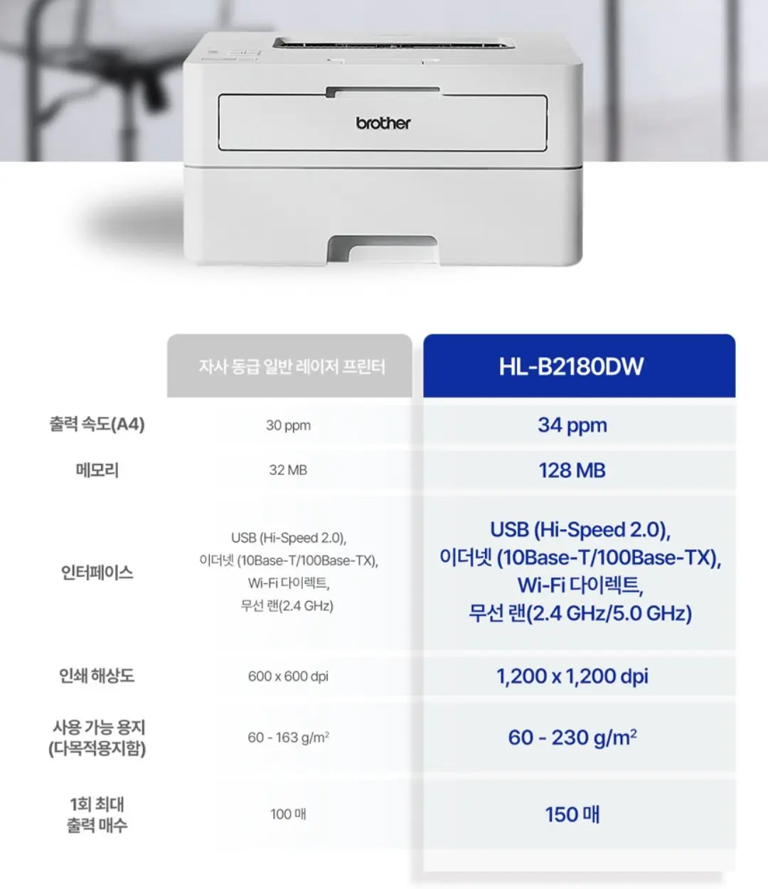 브라더 HL-B2180DW 흑백레이저프린터 토너세이브 |