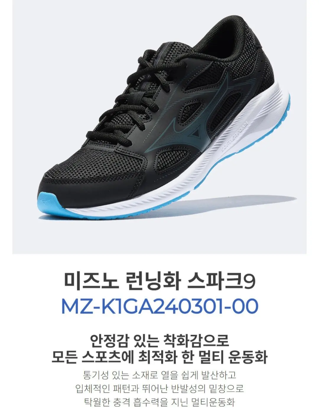 미즈노 스파크9 46,140원 일상화 + 가벼운운동용